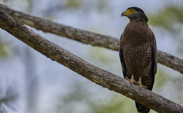Crested serpent eagle, Spilornis cheela (Latham, 1790) of Borneo. The Crested Serpent Eagle is a medium sized raptor of tropical Asia that favors forests and edges and is often seen soaring above the canopy; adults are dark brown with a small…