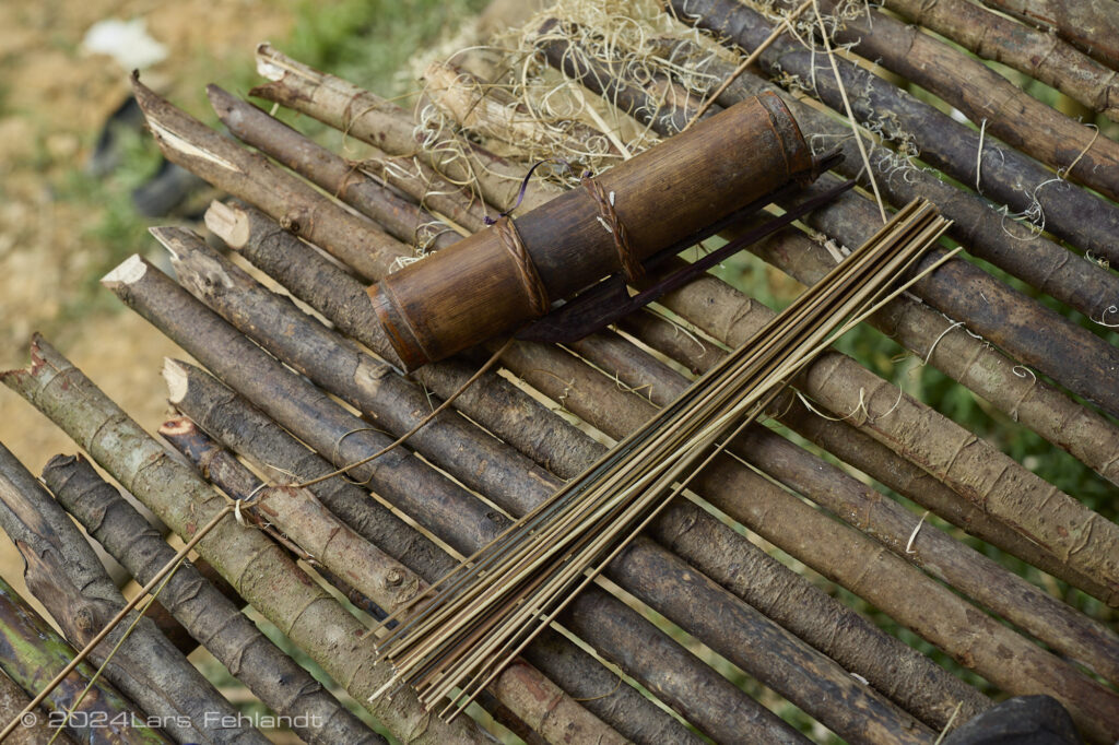 A typical Penan poison dart quiver with dart blanks.